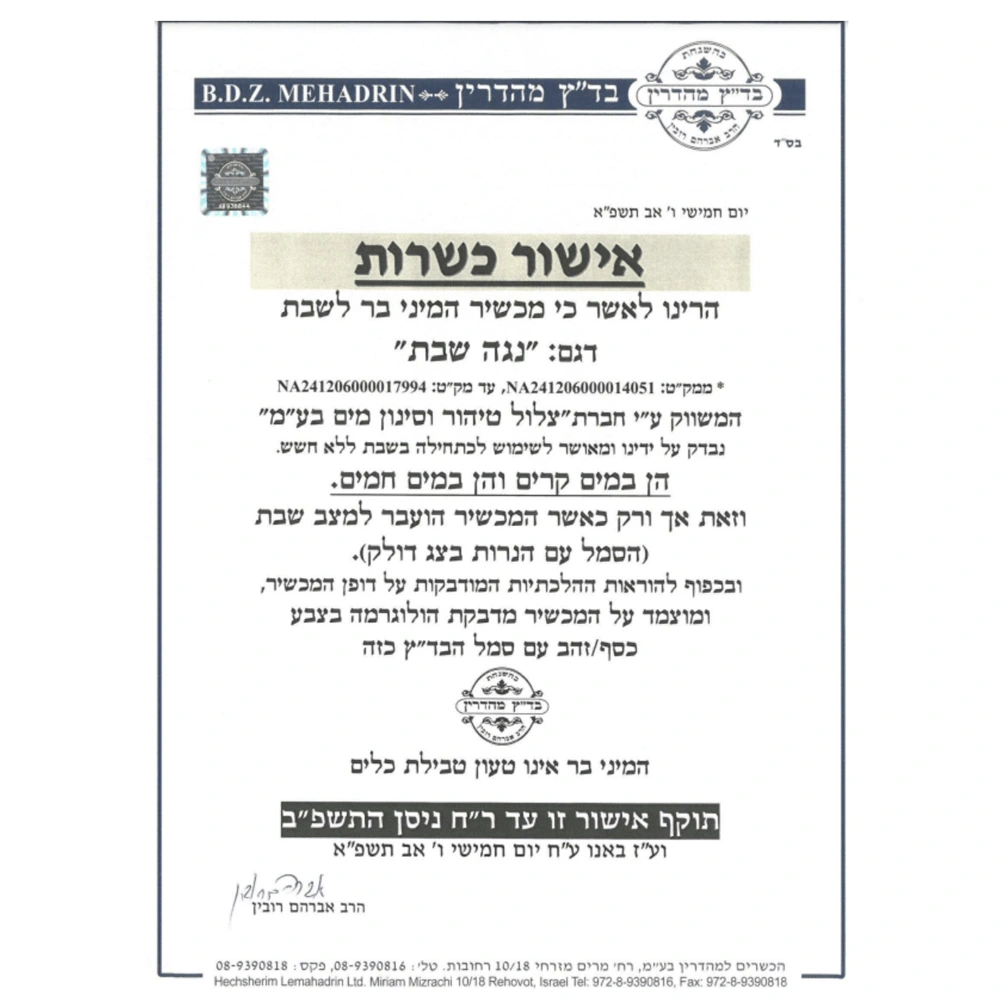 בר מים לשבת – נגה שבת עם כשרות מהודרת