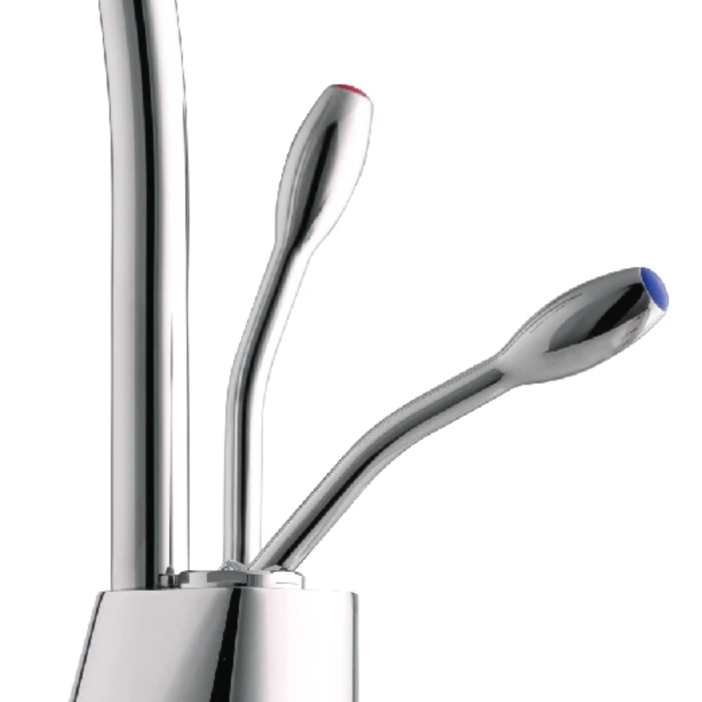 ברז מעוצב ונוח לשימוש, המאפשר בחירה בין מים קרים וחמים או פושרים וחמים. הפיה המסתובבת וארבע היציאות (מתאים למתקן ללא לחץ) מעניקות גמישות ונוחות בשימוש יומיומי. כולל אפשרות למזיגה רציפה של מים קרים וחזרה אוטומטית של ידית המים החמים לשמירה על בטיחות. גובה הברז 25.8 ס"מ, גובה הפיה 17.8 ס"מ ועומק הברז 13.5 ס"מ – מידות שמתאימות למגוון רחב של משטחי עבודה.