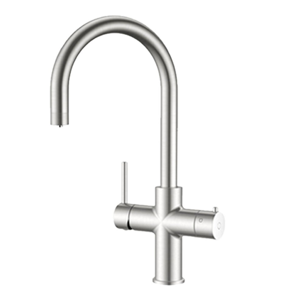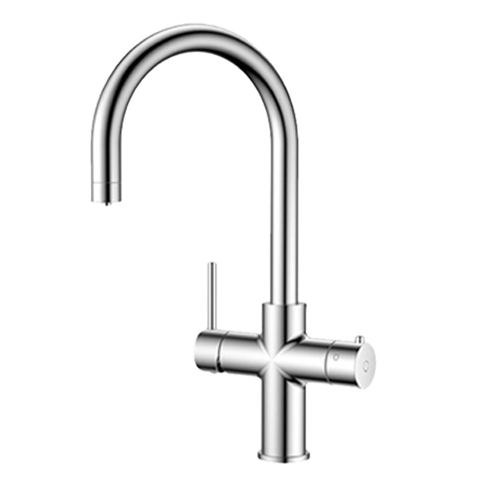 ברז חכם בעיצוב הרמוני ומודרני, משלב 4 פונקציות שימושיות במוצר אחד אלגנטי: מי ברז פושרים וקרים לשטיפת כלים, ומים מסוננים – קרים ורותחים. מסדרת 4 ב-1